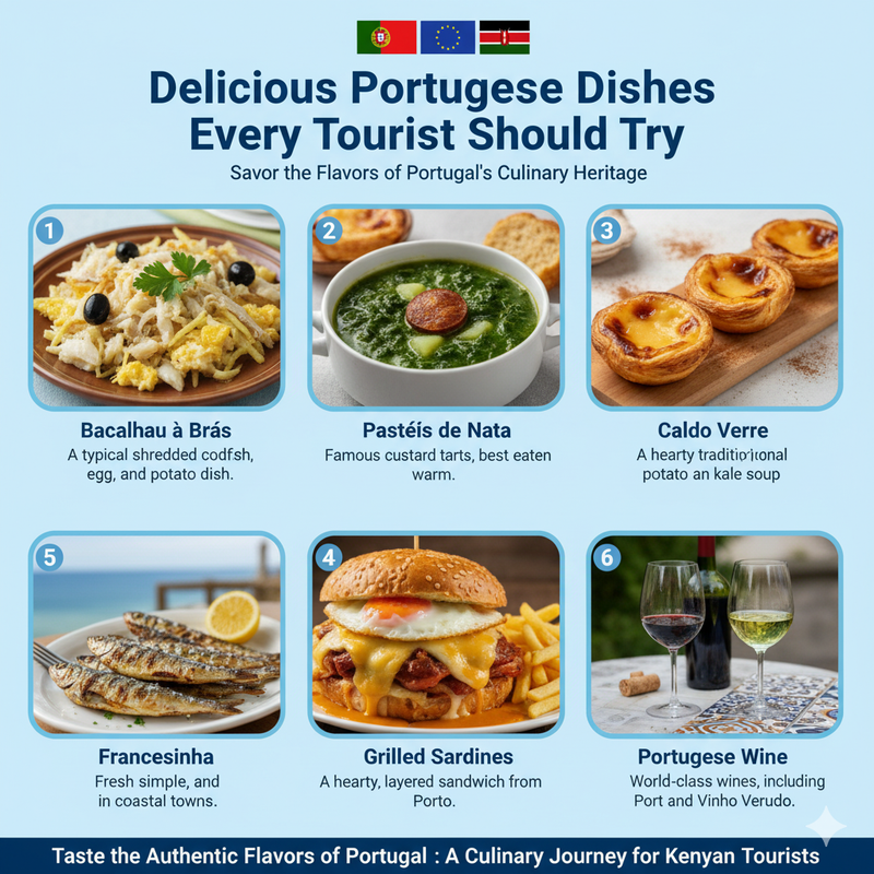 Portuguese cuisine is varied, full of flavor and in many ways, sea-inspired. Things to be tried by travelers of Kenya include: